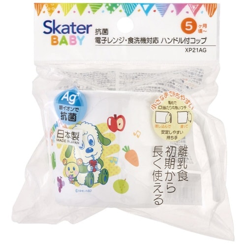 離乳食初期から長く使える、5ヶ月頃からのお食事に最適なコップです。 抗菌加工されているので安心してお使いいただけます。 小さな手でも持ちやすいハンドル付きです。 耐熱性に優れ、割れにくい材質です |