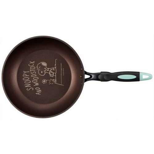 スヌーピーのフライパン26cmです。 内側にダイヤモンドコーティングが施されており、食材がくっつきにくく、お手入れが簡単にしていただけます |
