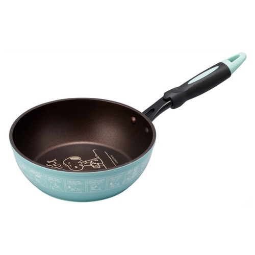 スヌーピーの深型フライパン20cmです。 内側にダイヤモンドコーティングが施されており、食材がくっつきにくく、お手入れが簡単にしていただけます。 深さが約7cmあるので、煮物を作る際にも便利です |