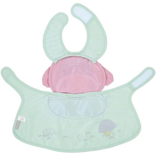 ダイカットのキャラクターがとても可愛いベビーエプロンです。 お食事中の食べこぼしを防ぐのに役立つキャッチポケットが付いています |
