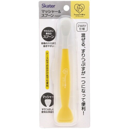 すくったり混ぜたりするスプーンとすりつぶせるマッシャーが一体になったマッシャー&スプーンです。 スプーンは容器のスミまで届きやすい柔らかい素材です。 マッシャーは便利な突起付きです |
