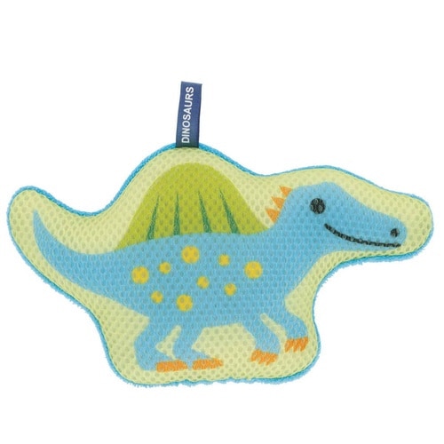 ディノサウルスがそのまま形になったボディスポンジです。 お肌に優しくて柔らかいので洗い心地が良いです。 前面は立体ネットになっており、泡立ちが良いです |