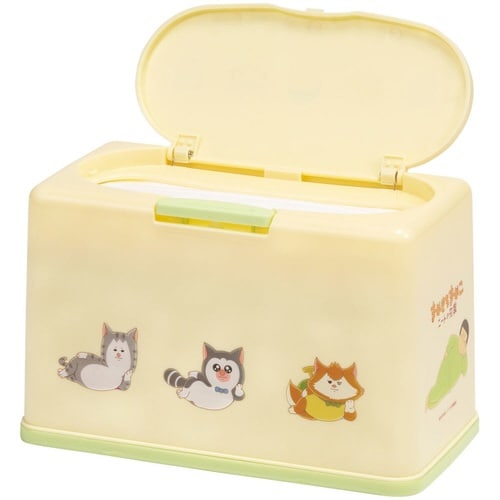 普通サイズのマスク(プリーツタイプ四角形)が約50枚収納できるマスクケースです。 蓋部分の手前を押すだけでサッと蓋が開くワンプッシュオープン式です |
