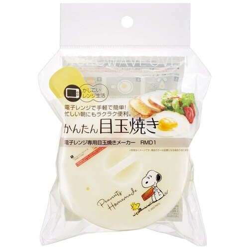 スヌーピーの目玉焼きメーカーです。 電子レンジで60秒で作れるので、朝の忙しい時間に活躍します。 高脚形状なのでムラなく作ることができます。 加熱時間の調節でお好みの固さの目玉焼きにできます |