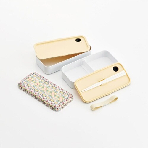 天平文様の2段弁当箱です。 割れにくいメラミン製の蓋で、端まで柄が入っています。 総容量は900mlで上段に420ml、下段480ml入ります。 汁漏れしにくいパッキン付きで持ち運びの際も安心です |