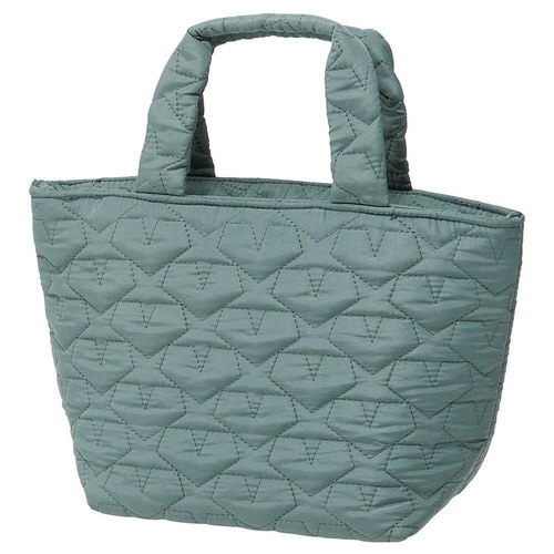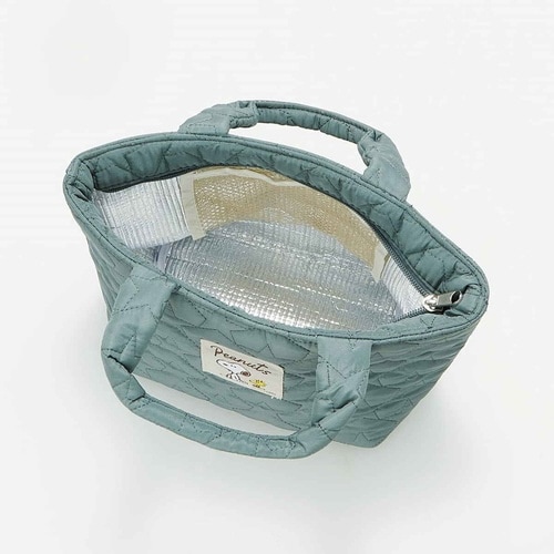 キルティング生地のランチバッグです。 内側がアルミ蒸着仕様なので保温・保冷効果があります。 保冷剤などが入れられるメッシュポケット付きです |