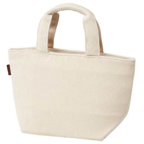 コーデュロイ生地のランチバッグです。 内側がアルミ蒸着仕様なので保温・保冷効果があります。 ちょっとしたお出かけやお買い物にもお使いいただけます。 保冷剤などが入れられるメッシュポケット付きです |