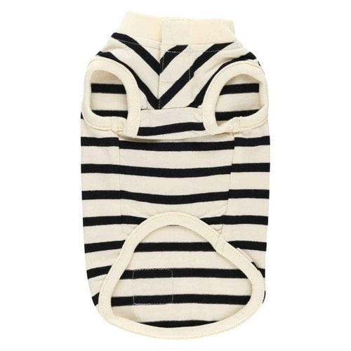 活動しやすいストレッチ生地を使用した超小型犬用ドッグウェアです。 袖のないタンクタイプで動きやすくなっています。 モノクロボーダー柄で男の子でも女の子でも使いやすいデザインです |
