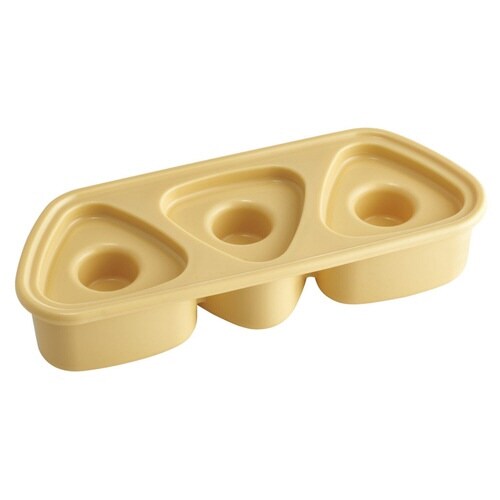 くぼみ付きのおにぎり押し型です。 食べやすいサイズを1度に3個作れます。 ご飯がくっつきにくい表面加工が施されています。 食洗器対応です。 蓋を外したら電子レンジの使用可能です |