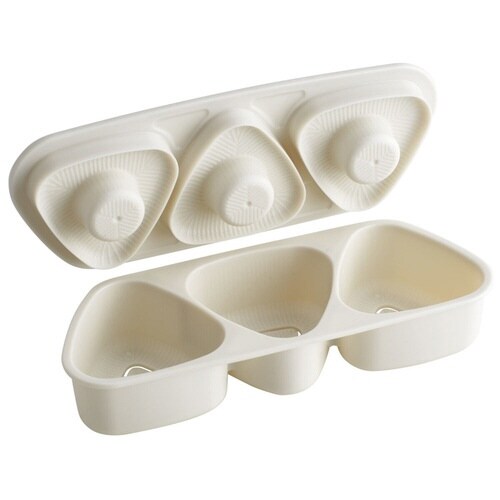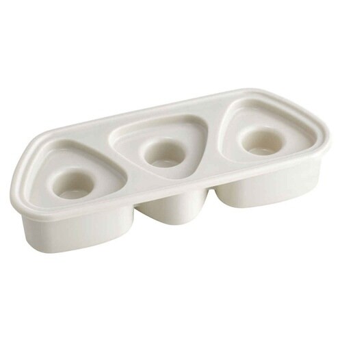 くぼみ付きのおにぎり押し型です。 食べやすいサイズを1度に3個作れます。 ご飯がくっつきにくい表面加工が施されています。 食洗器対応です。 蓋を外したら電子レンジの使用可能です |