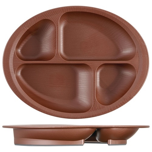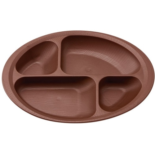プレート 28cm すくいやすい 仕切り皿 ランチプレート 木製風 介護 食器 プラスチック製 バイオマス 日本製 ブラウン