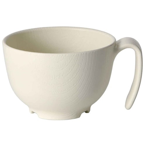 木目調の軽くて丈夫で持ちやすい形状の茶碗です。 電子レンジや食洗機の使用OKです。 しっかり握りやすい太めのハンドルです スタッキングが可能で収納しやすいです。 手をハンドルに差し込むと安定します |