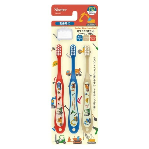 歯ブラシ 3本セット 園児用歯ブラシ キャップ付 はたらくクルマ