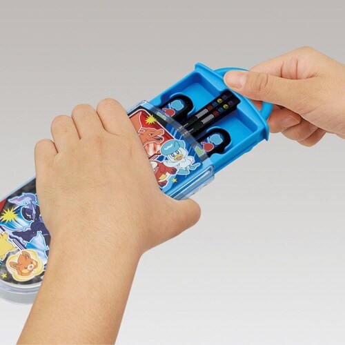 ポケットモンスターが描かれた楽しい柄のお箸・フォーク・スプーン・ケースのセットです。 指を掛けてスライドできるケースなので、小さなお子様でも簡単に開閉することができます。 衝撃に強く丈夫な構造です |