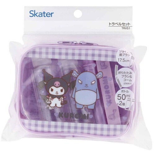 クロミのトラベルセットです。 旅行やお出かけなどに最適です。 ジョイント歯ブラシ・折りたたみブラシ&コーム・リキッドボトル・ポーチがセットになっています |