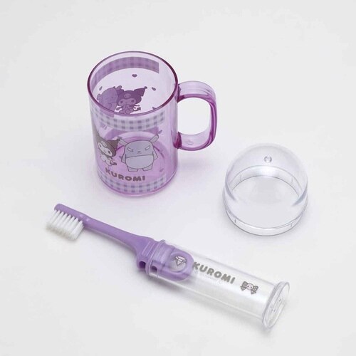 クロミのコップ付き携帯用歯ブラシセットです。 旅行やお出かけにぴったりのジョイント式歯ブラシです。 コンパクトに収まるので、カバンに入れても幅を取りません |