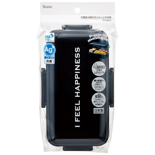 お弁当箱の容量は830mlです。 お弁当箱全体に抗菌加工が施されています。 4点ロックで蓋をしっかり閉められます。 蓋以外は電子レンジ対応です。 食洗機対応なので、お手入れ簡単です |