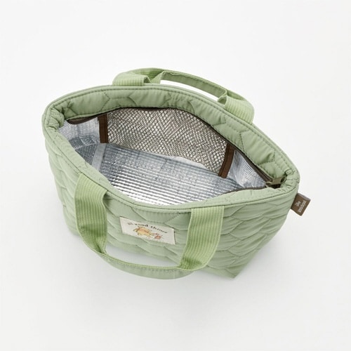 キルティング生地のランチバッグです。 内側がアルミ蒸着仕様なので保温・保冷効果があります。 保冷剤などが入れられるメッシュポケット付きです |