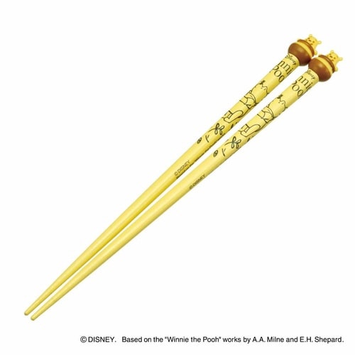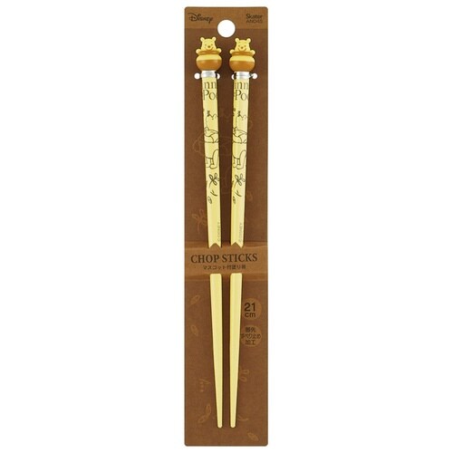 くまのプーさんのマスコット付天然木のお箸です。 使いやすく持ちやすい21cmサイズです。 先端部分は、食べ物をつかみやすくするためにすべり止め加工がしてあります |