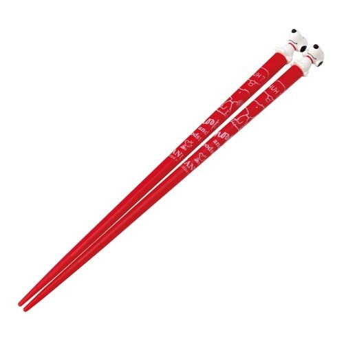 スヌーピーのマスコット付きのアクリル箸です。 使いやすく持ちやすい21cmサイズです。 先端部分は、食べ物をつかみやすくするためにすべり止め加工がしてあります |