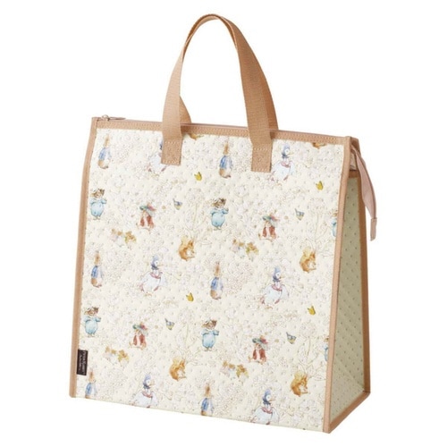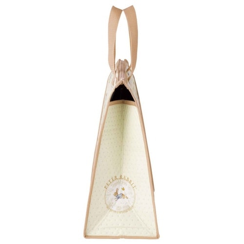 ピーターラビットの不織布トートバッグです。 マチ幅が約17cmで大きめです。 内側には、保冷効果があるアルミ蒸着素材が使われています |