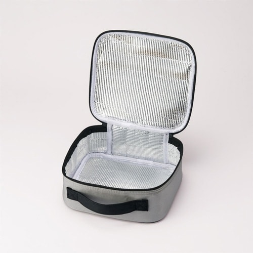 フロントポケット付きで、ランチ小物を収納できます。 内側はアルミ蒸着仕様でお弁当を適温に保ちます |