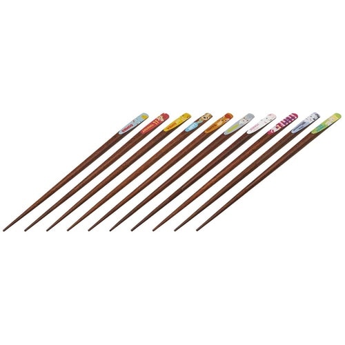 使いやすく持ちやすい21cmサイズです。 10膳入りのお箸セットです。 先端部分は、食べ物をつかみやすくするためにすべり止め加工がしてあります |