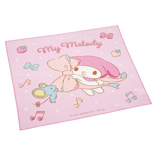 マイメロディがデザインされた43×43cmのランチクロスです。 お弁当箱を包んだり、ランチョンマット(ナフキン)としてご使用いただけます |