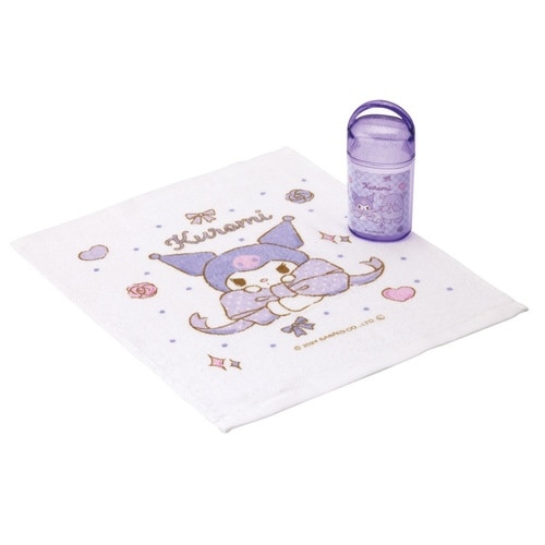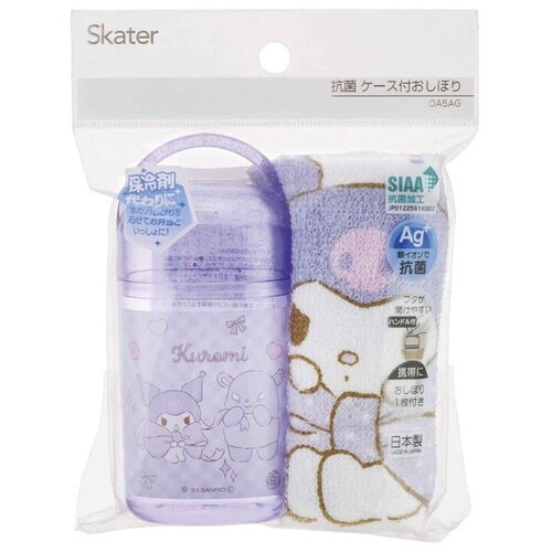 クロミの抗菌加工が施されたケースとおしぼりのセットです。 ※すべての細菌の増殖を抑制するものではありません。 開けやすいように持ち手が付いたクリアな透明素材のケースです |