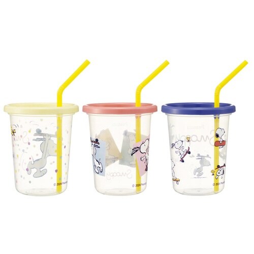 日本製 タンブラー ストロー付タンブラー3個 スヌーピー スケートボード