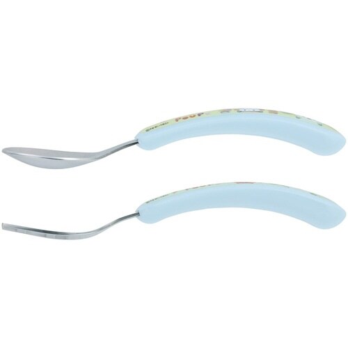 握りやすい太めのグリップで小さな手でも持ちやすいです。 スプーンの先端は薄いから食べ物をすくいやすく食べやすいです。 フォークは先が薄く突き刺しやすい形状です。 麺類が滑り落ちにくい凹凸形状です |