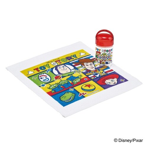 トイ・ストーリーの抗菌加工が施されたケースとおしぼりのセットです。 ※すべての細菌の増殖を抑制するものではありません。 開けやすいように持ち手が付いたクリアな透明素材のケースです |