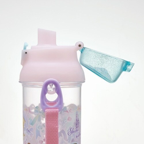 ディズニープリンセスの直飲みボトルです。 本体は透明度の高いPET製なので中身が見やすく分かりやすいです。 小さなお子様でも開けやすいプッシュ式で簡単に飲めます |