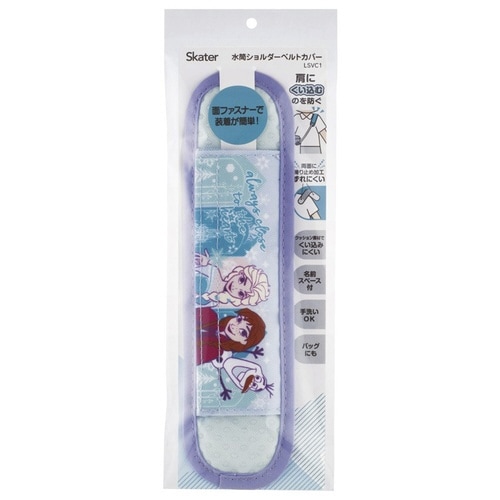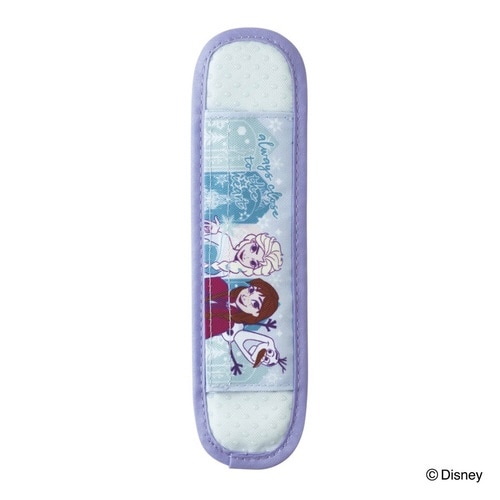 アナと雪の女王の水筒ショルダーベルトカバーです。 水筒のショルダーベルトにセットして、首や肩への負担を軽減してくれます。 開いてベルトを挟んで面ファスナーで固定するだけなので装着が簡単です |