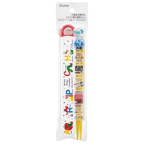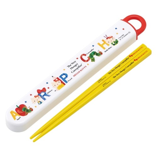 はらぺこあおむしキティの開けやすいスライド式箸箱とお箸のセットです。 箸箱は分解できるので洗いやすくて衛生的です。 お箸には名入れスペースがあります。 便利な名前シール付きです。 食洗機対応です |