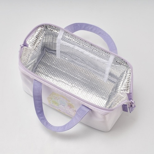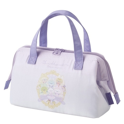 すみっコぐらしのがま口ランチバッグです。 開け口が広く、お弁当箱などの出し入れがスムーズにできます。 内側はアルミ蒸着素材で保冷効果があります。 保冷剤が入るポケット付きです |