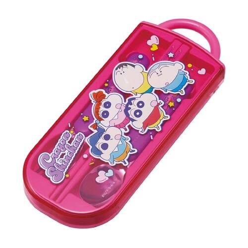 クレヨンしんちゃんのお箸・フォーク・スプーン・ケースのセットです。 指を掛けてスライドできるケースなので、小さなお子様でも簡単に開閉することができます。 衝撃に強く丈夫な構造です |