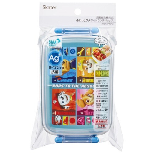 パウパトロールの容量450mlの角型お弁当箱です。 お弁当箱の半分に入るご飯の量は、お茶碗(約200ml)約1.1杯分です。 蓋以外は電子レンジ対応です。 便利な名前シール付きです |