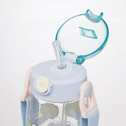 中身が見える透明ボディのストロー飲み水筒です。 本体がプラスチック製で軽く、持ち運びに便利です。 簡単に開けられるワンプッシュボトルです。 飲む時に蓋が戻らないキャップロック設計です |