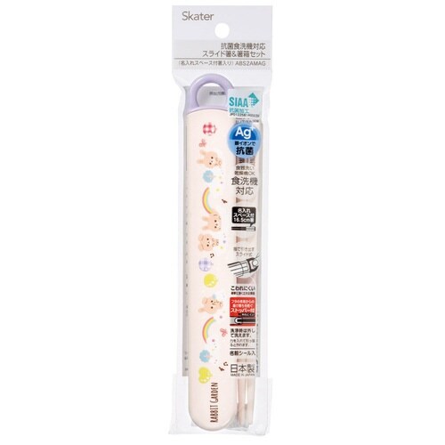 ラビットガーデンの開けやすいスライド式箸箱とお箸のセットです。 箸箱は分解できるので洗いやすくて衛生的です。 お箸には名入れスペースがあります。 便利な名前シール付きです。 食洗機対応です |