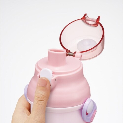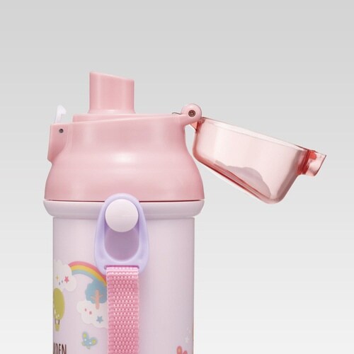 ラビットガーデンの軽くて持ちやすい水筒です。 安心の抗菌加工が施されています。 片手でワンプッシュオープンです。 蓋が落ちてこないキャップロック設計です。 氷が入れやすい広口設計になっています |