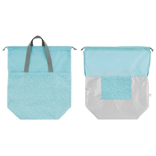 容量約34Lとたくさんお買い物をしてもたっぷり入るエコバッグです。 自転車の前かごにすっぽり収まるサイズ感です。 バッグの内側にはシルバーコーティングが施されており、保冷効果があります |