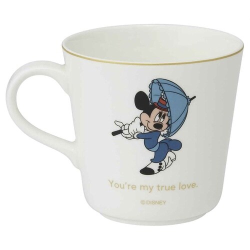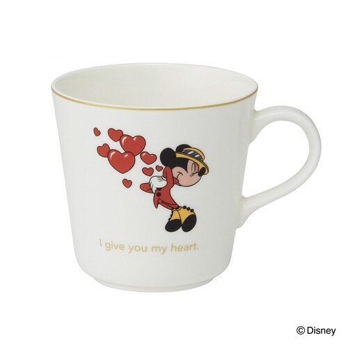 ミッキーとミニーが描かれたマグカップです。 表裏で異なるデザインを楽しめます。 温かみのある乳白色と滑らかな質感、美しい透光性が特徴の高級磁器「ボーンチャイナ」を使用しています |