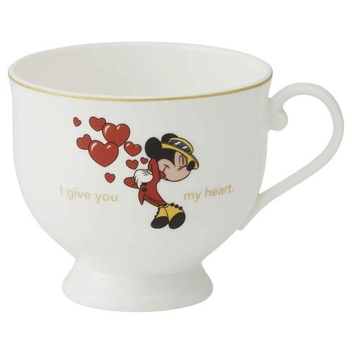 ミッキーとミニーが描かれたカップ&ソーサーのセットです。 表裏で異なるデザインを楽しめます。 温かみのある乳白色と滑らかな質感、美しい透光性が特徴の高級磁器「ボーンチャイナ」を使用しています |