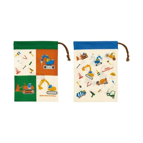 はたらくクルマの巾着袋です。 柄違いが2枚入りなので、気分によって使い分けられます。 安定感のあるマチ付きです |