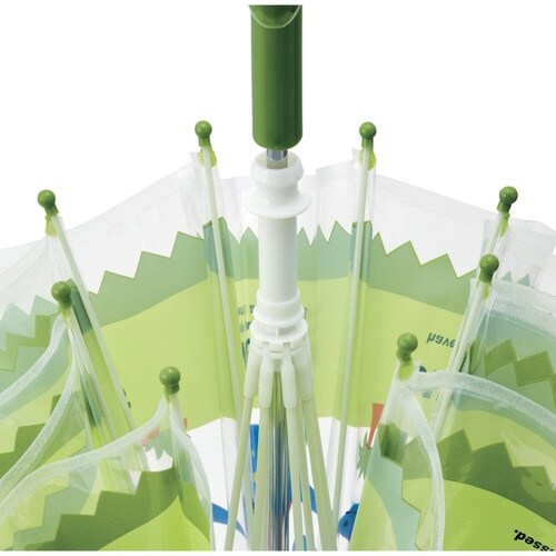 かわいい恐竜イラストのビニール長傘です。 サイズは約40cmで3.5から5歳向けです。 適応身長の目安は約95から105cmです。 開閉部は指を挟みにくい安全カバー付きで安心です |