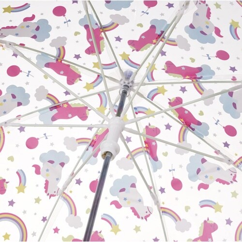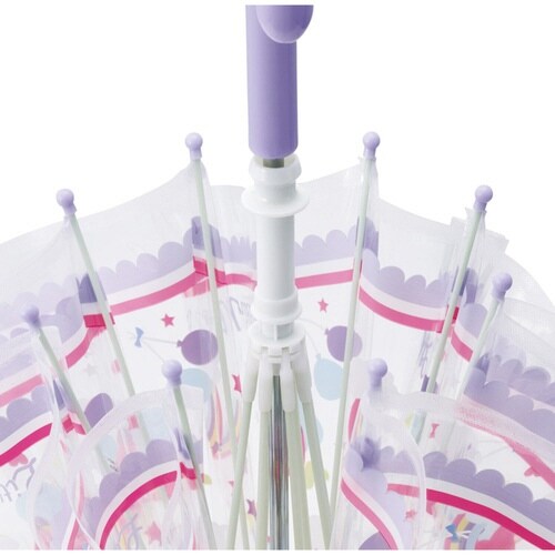 かわいいユニコーン柄のビニール長傘です。 サイズは約40cmで3.5から5歳向けです。 適応身長の目安は約95から105cmです。 開閉部は指を挟みにくい安全カバー付きで安心です |