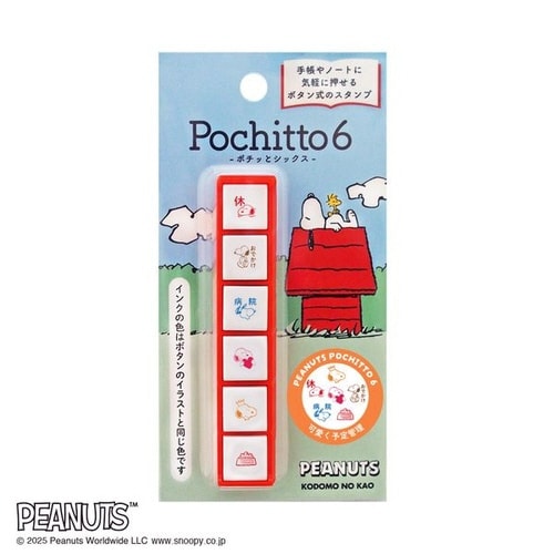 ポチポチっと押せるボタン型の6連浸透印。手帳やカレンダーのスケジュール管理に便利。 |