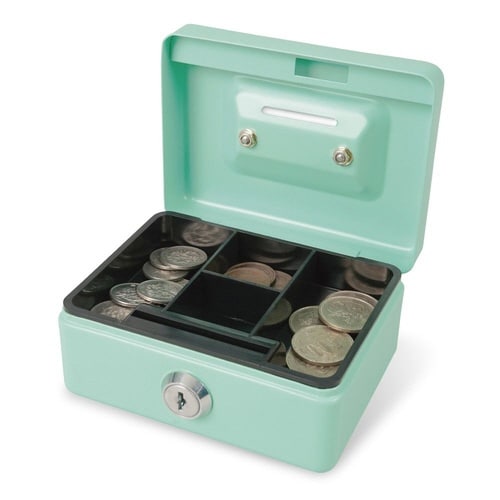 上蓋に硬貨投入口がつき、施錠したまま硬貨が入れられます。貯金箱、募金箱、無人販売での料金箱としてお役立ていただけます。 |