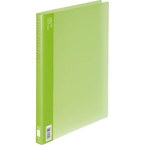 PPレターファイル[E:R] 樹脂製とじ具・樹脂押え具 背紙差替式 規格:A4判S型 表紙:PPシート 0.7mm厚 適正収容枚数:120枚(12mm厚) |
